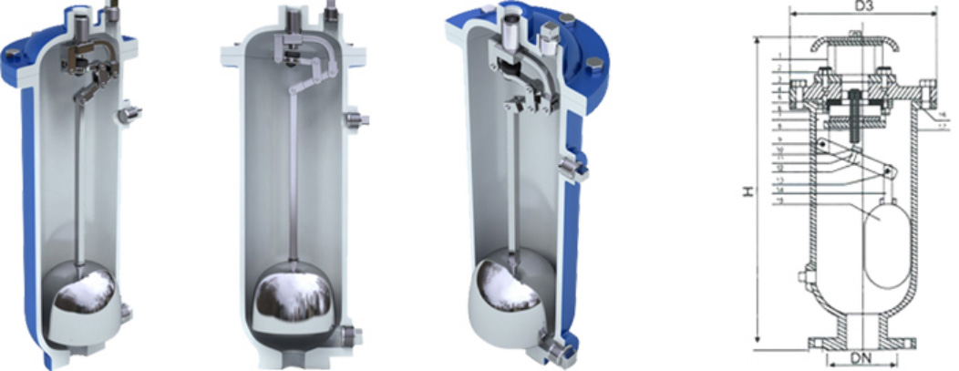 SCAR排气阀与CARX排气阀原理一样,只是结构略作改动,杠杆机构稍有改进,把浮球控制在下部,使污物只能在阀体下部物污不会缠绕上部排气口上,不会影响密封性能。