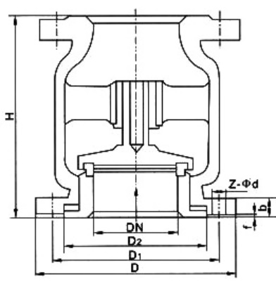尼科H42H铸钢立式止回阀由于管线中尼科端介质的压力作用,而克服弹簧阻力使阀门开启或关闭;当尼科端介质压力低于出口端时,弹簧将阀芯推向阀座而使阀门关闭,阻止介质逆流,故起止回作用。立式止回阀广泛使用于化工、液化石油气、流体等行业。