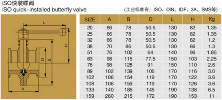 尼科卫生级蝶阀尺寸: