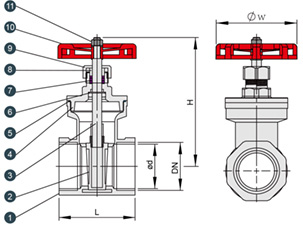③阀杆与阀板采用梯形螺纹连接,使闸板能自行调整,密封效果好。