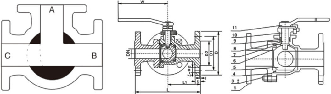 尼科T型/L型法兰三通球阀构造: