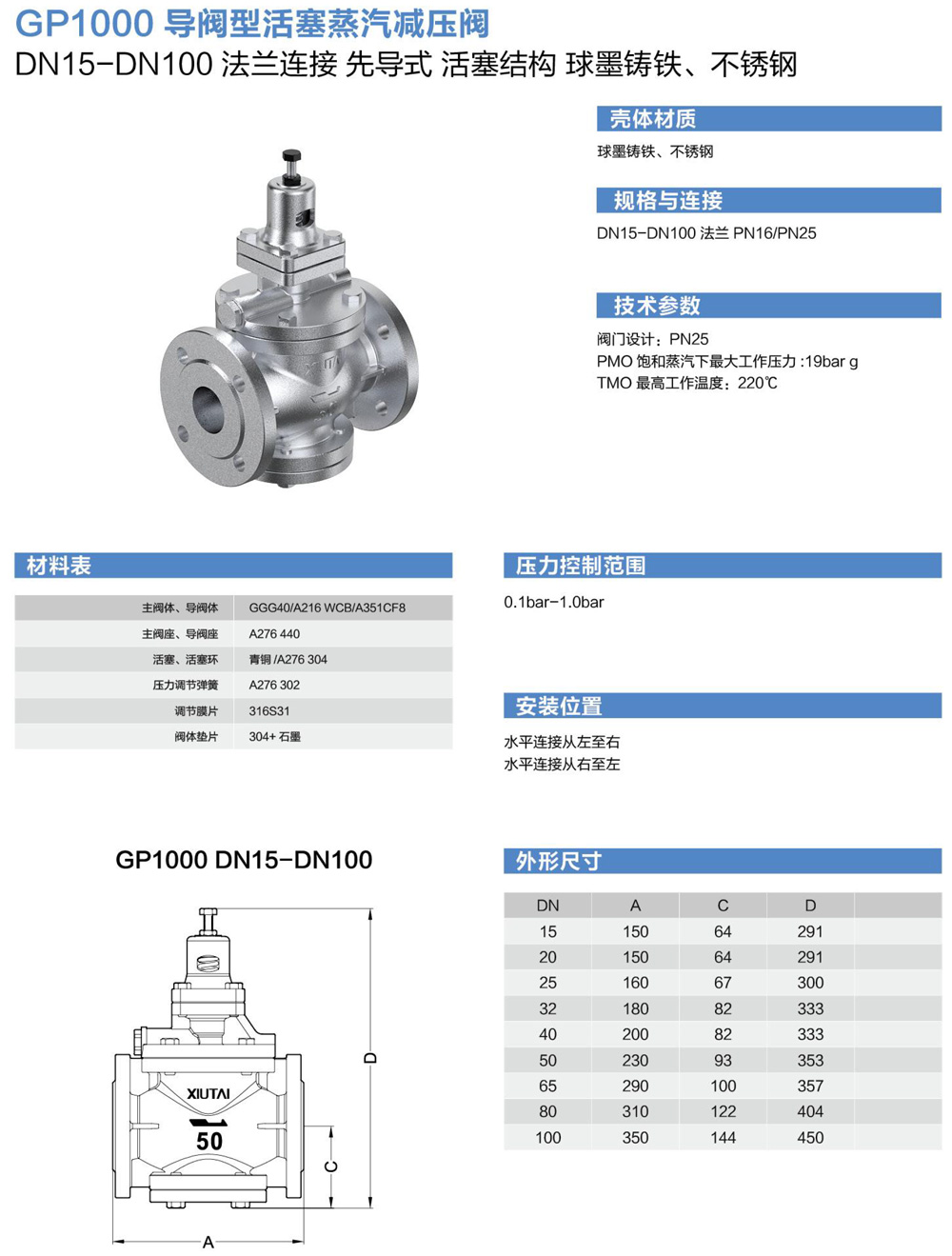 GP1000导阀型活塞蒸汽减压阀
