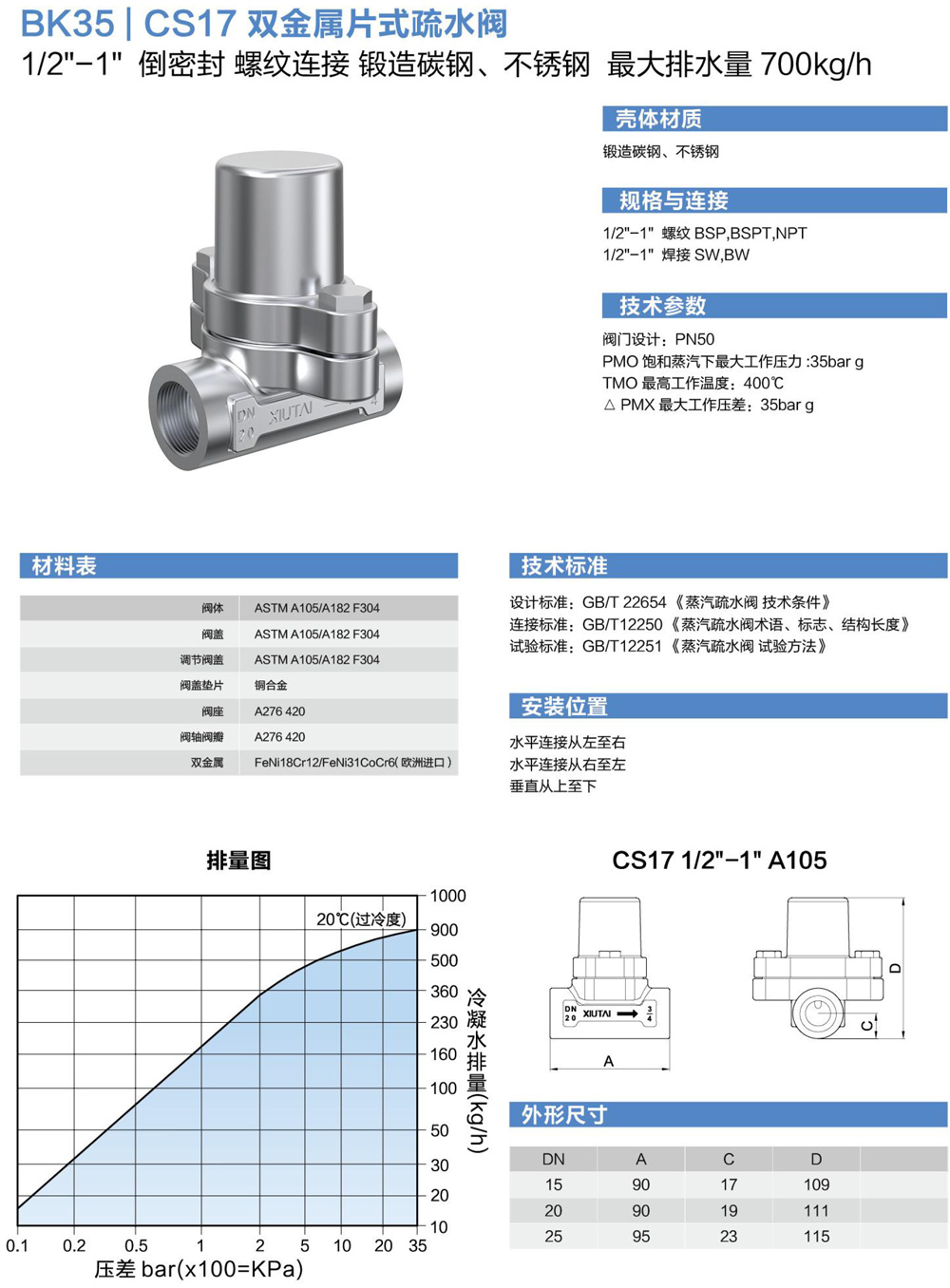 BK35-CS17双金属片式疏水阀