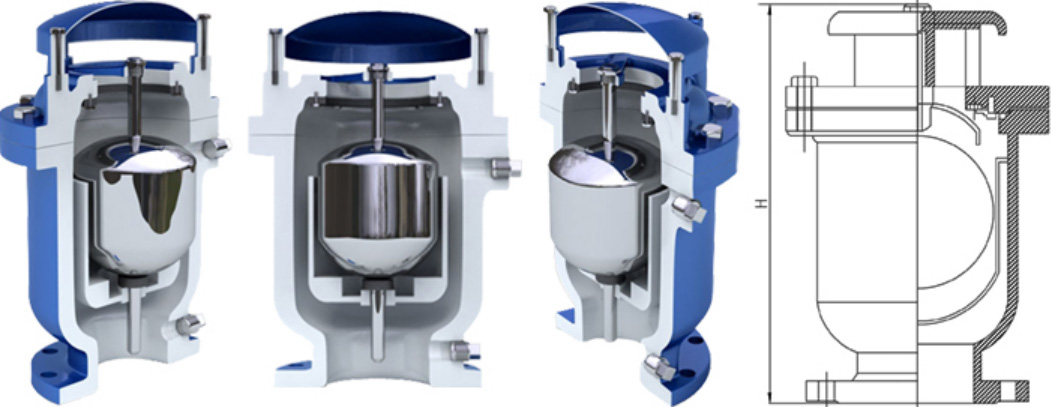 尼科CARX复合式排气阀(空气阀)主要用于城市输水管道和压力流管道,它让管路中液流前方被推压的空气排出管道,以便叫管道完全充水。一旦排气完毕,它就完全关闭不在打开,直到管道排水放空的时候或出现负压的时候,它才打开,吸入大量的空气,破坏真空,保护管路。