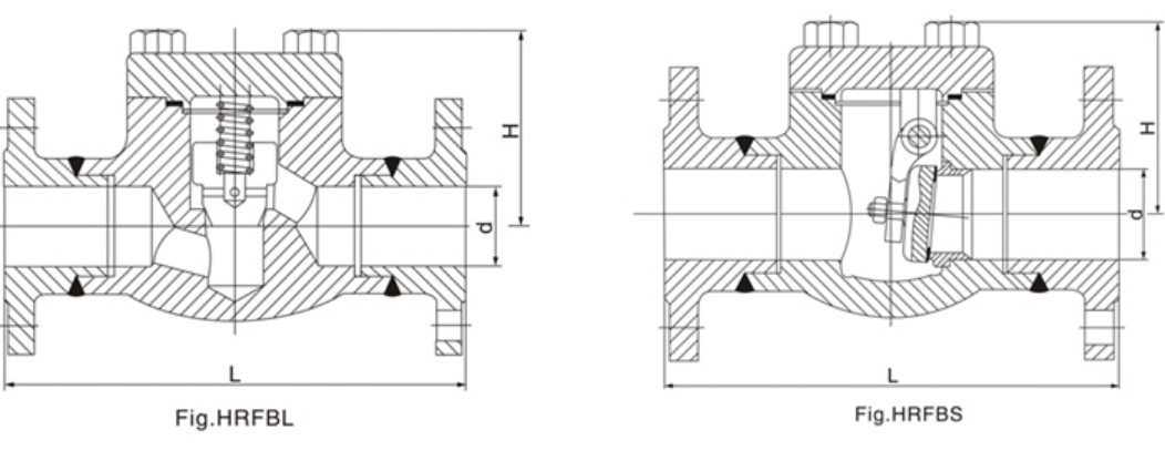 尼科H41Y法兰锻钢止回阀有二种体盖连接设计形式:第一种是体盖螺栓连接锻钢止回阀,按这种连接形式设计的阀门,其阀体与阀盖用螺栓连接,缠绕式垫片密封,优点是便于维修;第二种体盖全焊密封锻钢止回阀,按这种连接形式设计的阀门,其阀体与阀盖用螺蚊连接,全焊密封,优点是无泄漏。
