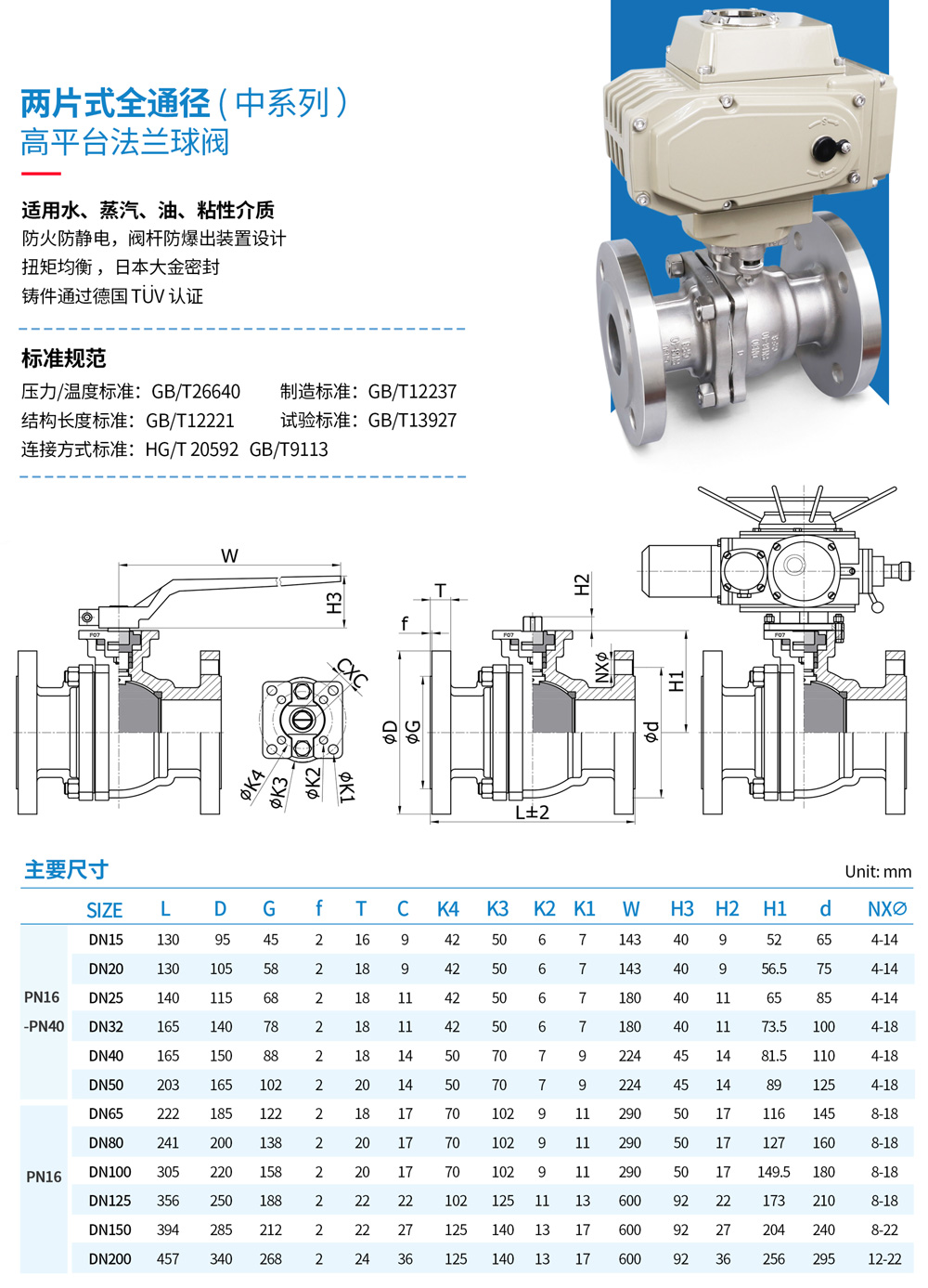 两片式全通径高平台法兰球阀