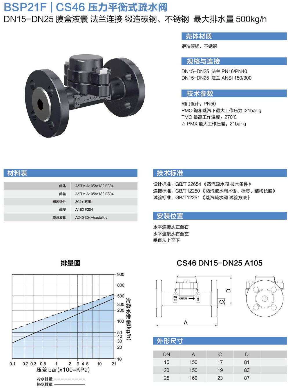 BSP21F-CS46压力平衡式疏水阀