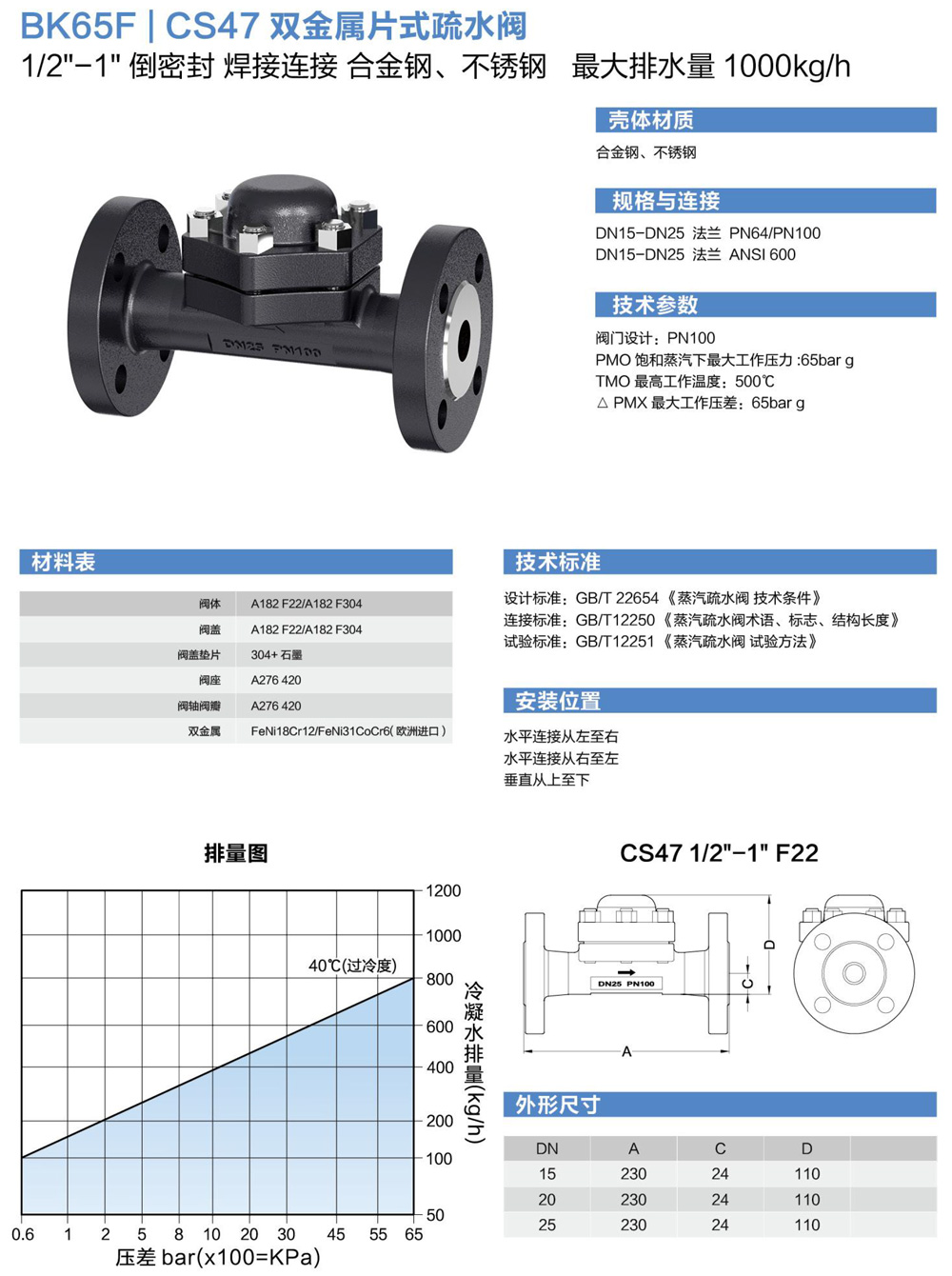 BK65F-CS47双金属片式疏水阀