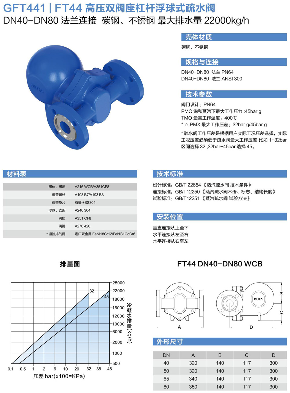 GFT441-FT44高压双阀座杠杆浮球式疏水阀